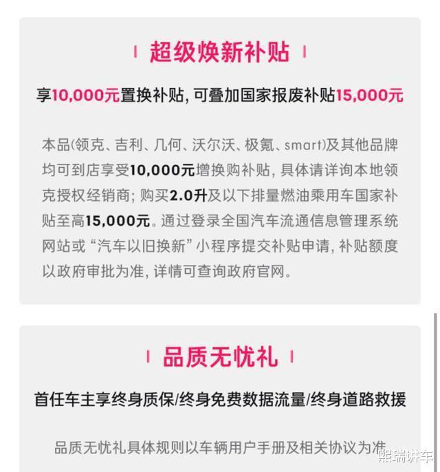 领克01这次也算下了血本,又是延长质保,又是免费保养,又是道路救援,就差没把车主供起来了。